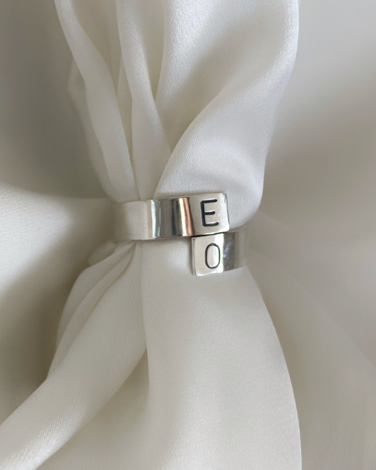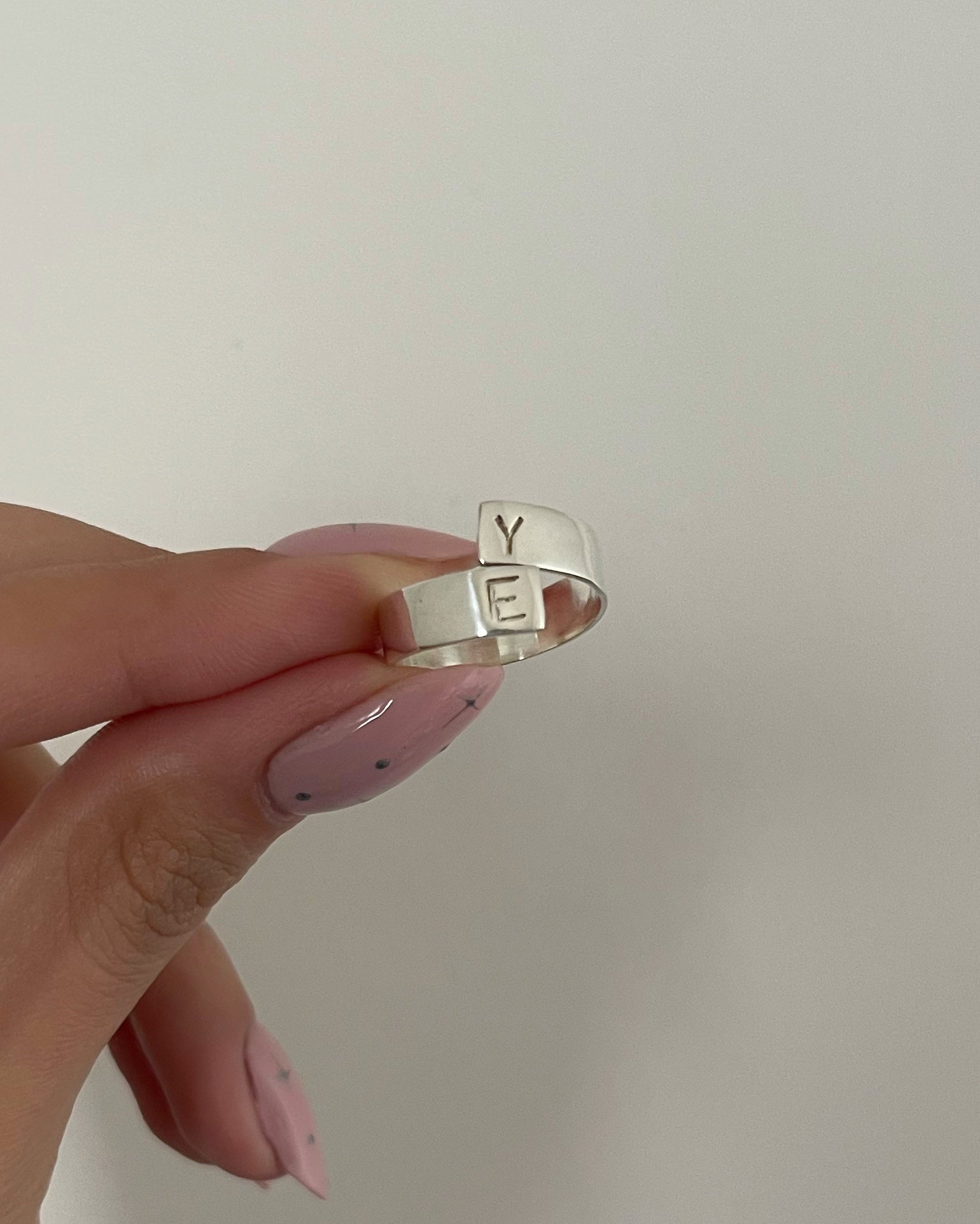 טבעת קאפל עשויה בעבודת יד מלאה עם הטבעה של שתי אותיות בעברית / אנגלית לבחירתכם. מתנה אישית ומיוחדת עבור האדם שאתם אוהבים