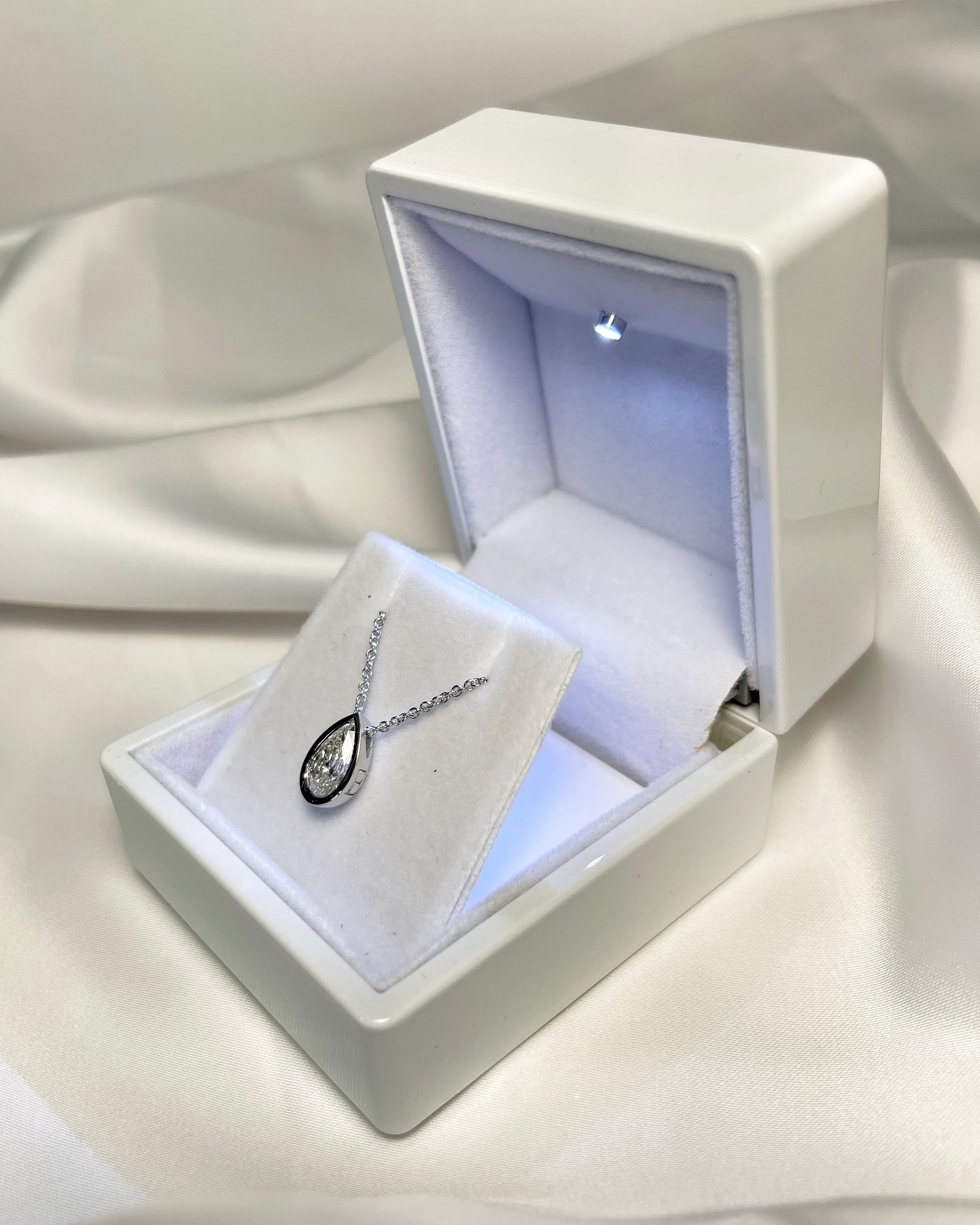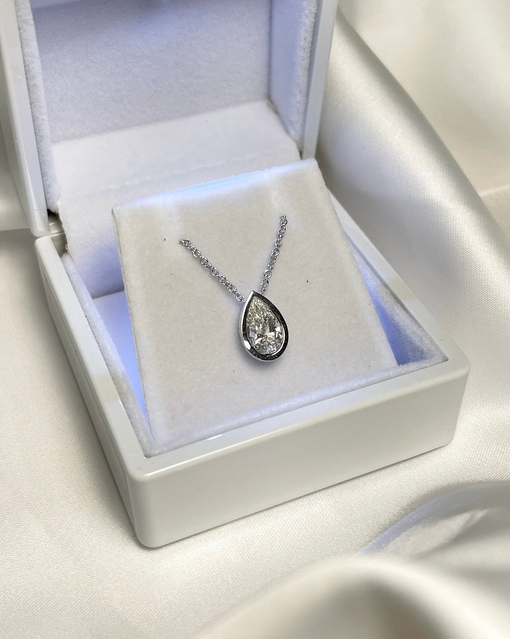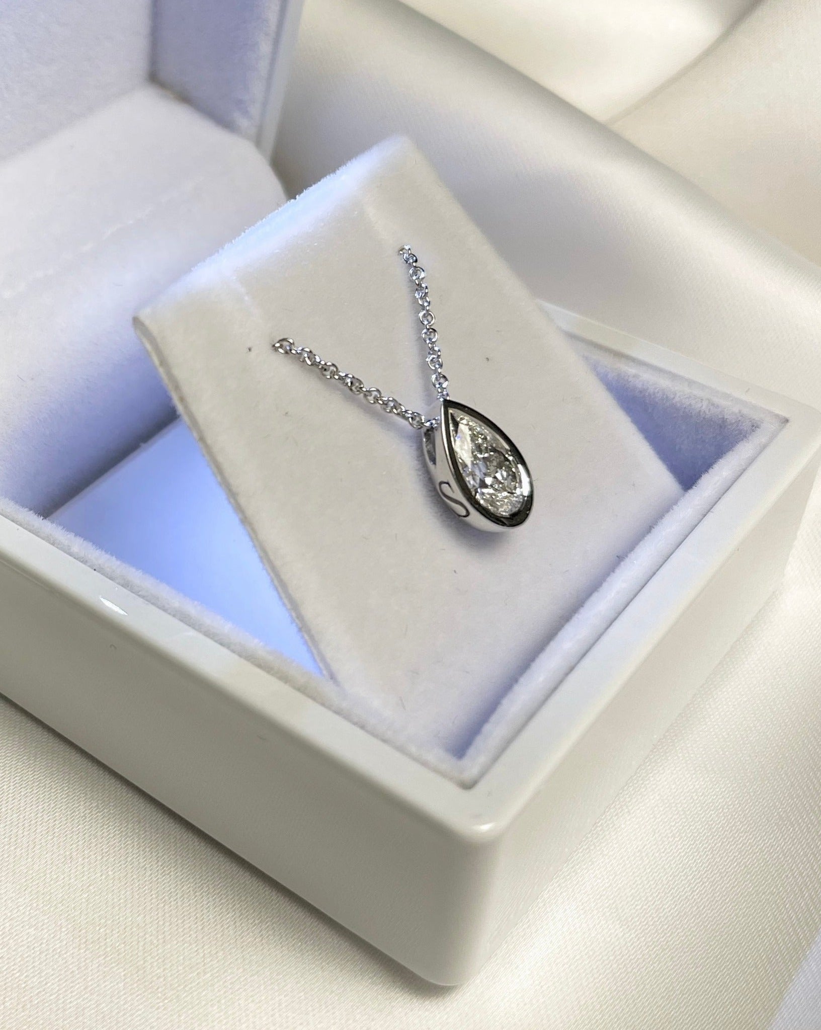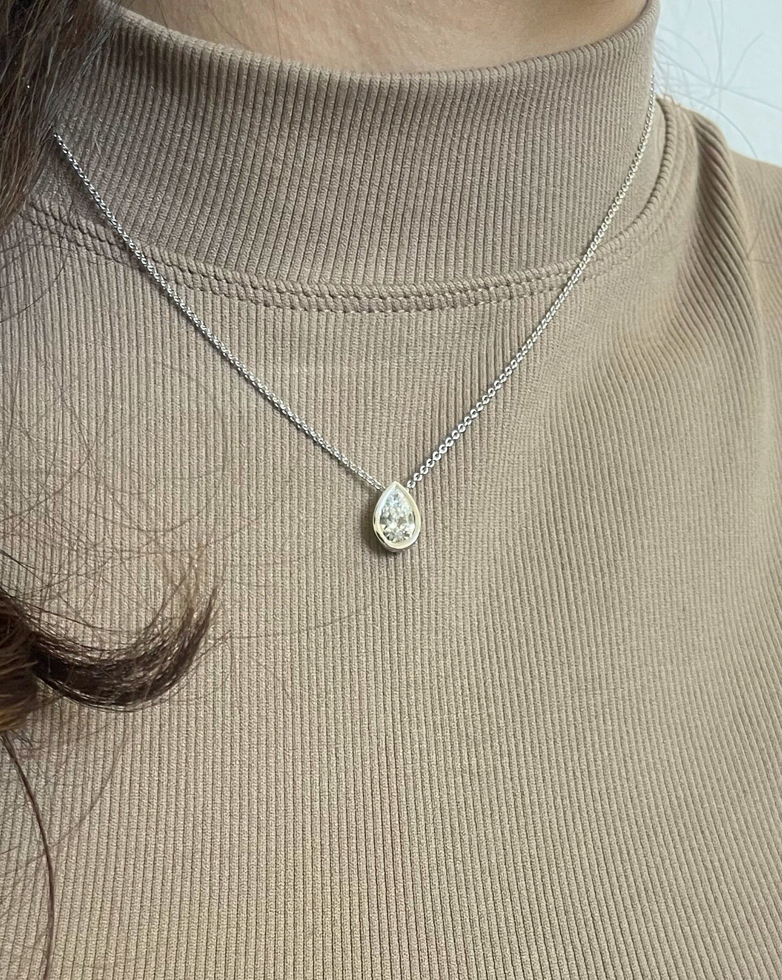 שרשרת מיוחדת בעיצוב אישי, יהלום מרחף במשקל 1.20 קראט בצורת טיפה משובץ בכוס זהב, על כוס הזהב חרוטות 3 אותיות לבחירתכם