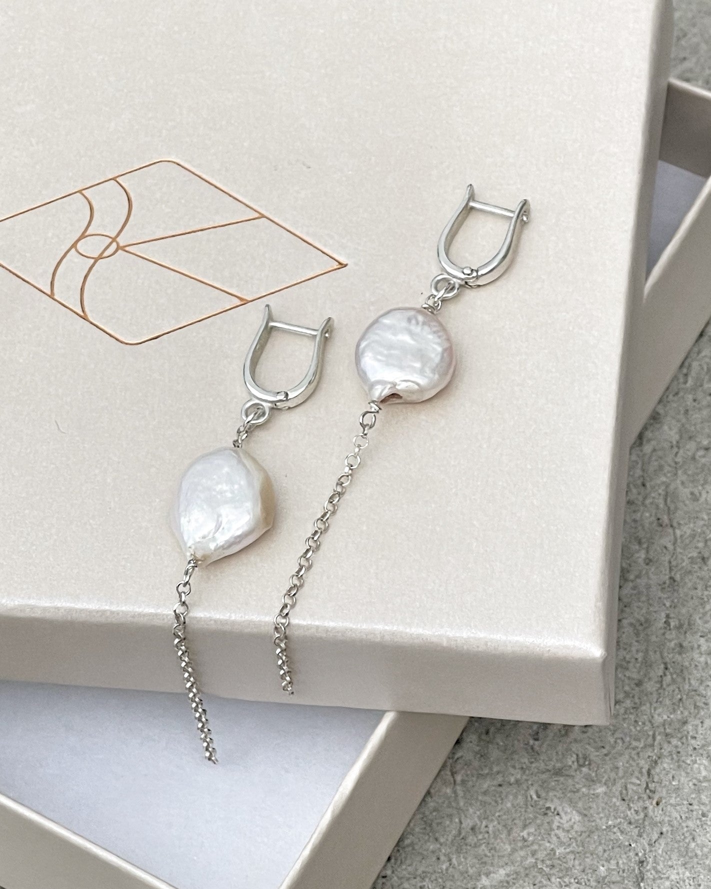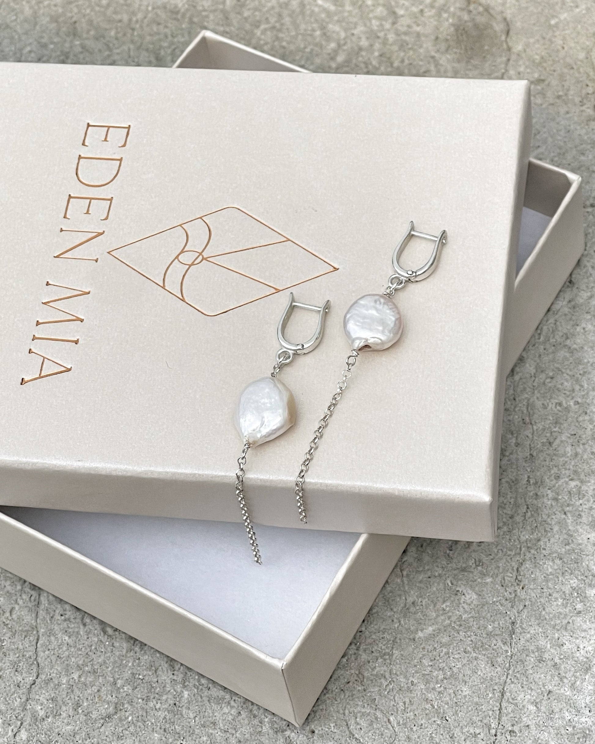 עגילי לורין הם עגילים עשויים בעבודת יד. עגילים נופלים שבראשם פנינת מטבע טבעית היסטרית, ובהמשך שלהם שרשרת כסף עדינה שיוצרת מראה אלגנטי שאי אפשר לפספס