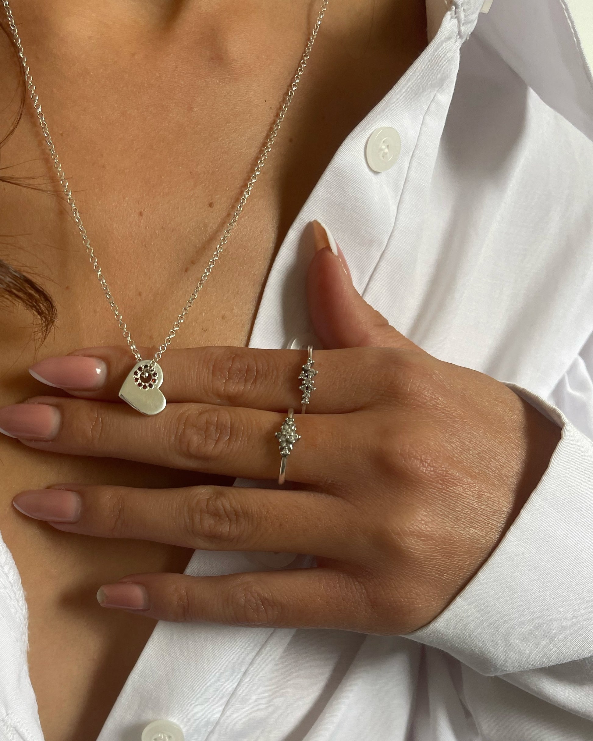לב המלחמה שלי- לב שעשוי בעבודת יד, אחד העיצובים הראשונים שלי במלחמה. תליון בצורת לב עם חור שסביבו משובצות אבני גרנט אדומות טבעיות לחיזוק אנרגטי ודרך החור המפואר עוברת השרשרת