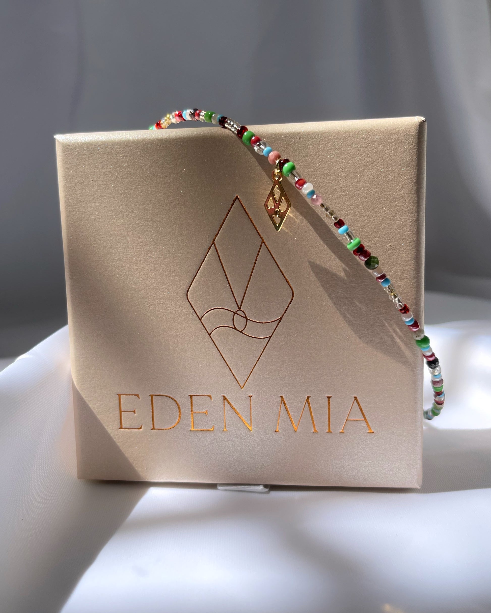שרשרת ריינבו היא שרשרת צבעונית, כיפית ואלגנטית עם תליון עדן מיה במרכז. השרשרת משתלבת מהמם ויפייפיה גם לבדה