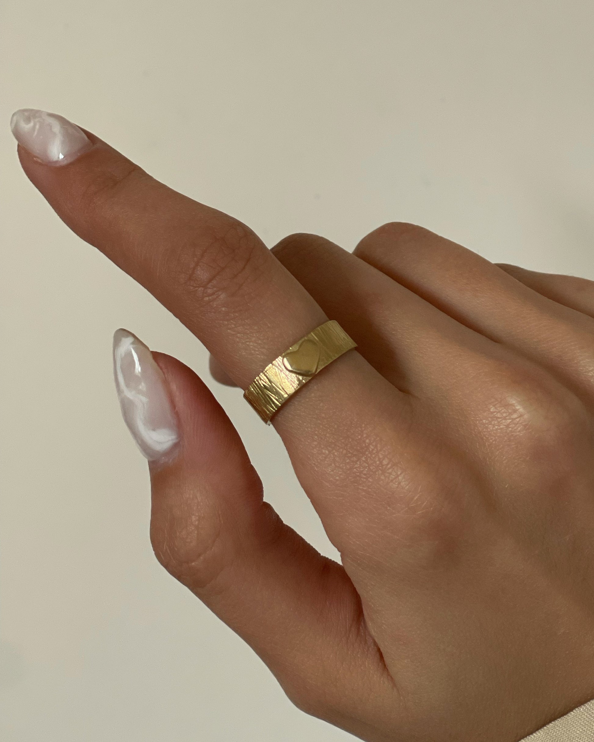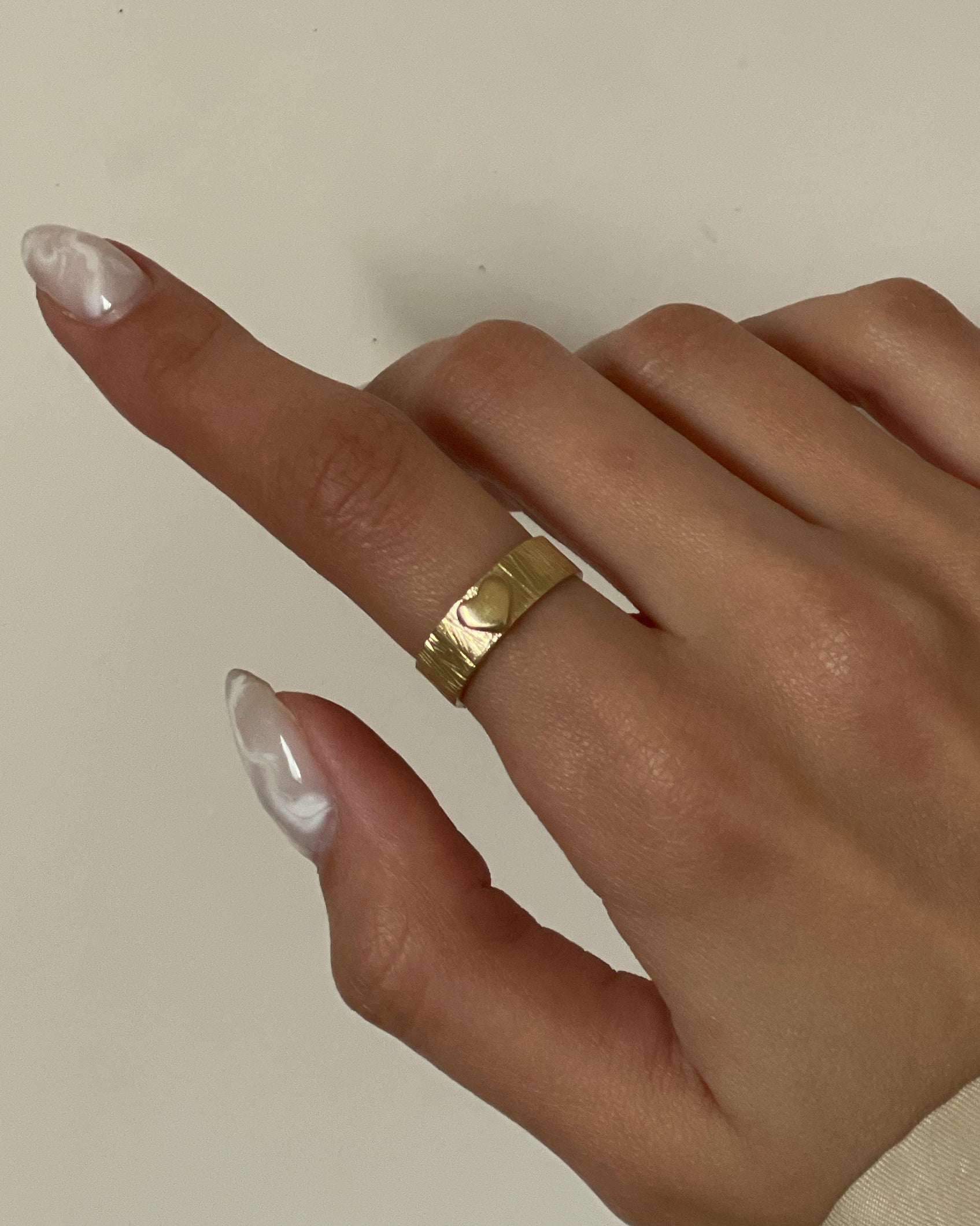 טבעת שובל עשויה מלב יצוק מבריק מעל טבעת מחוספסת שעשויים בעבודת יד