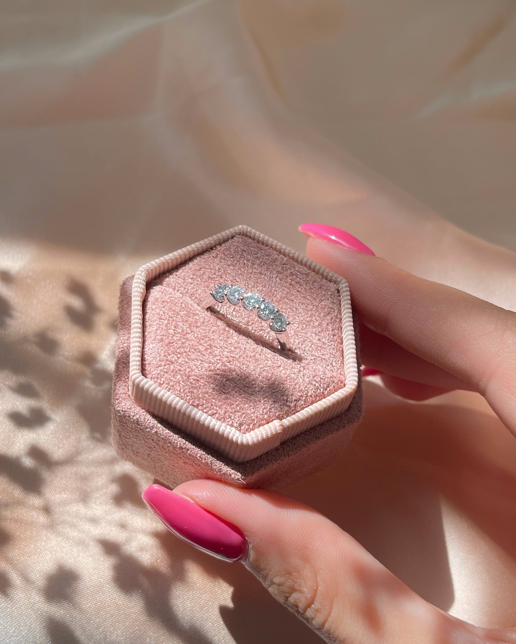 טבעת קורל היפיפייה היא טבעת משובצת 5 יהלומים שכל אחד במשקל 10 נק׳, 0.50 קראט יהלומים טוטאל